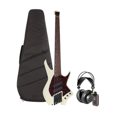 Hils HNB5 Headless 5-String Bass Guitar Fan Fret in Gloss Ivory Silent Bundle