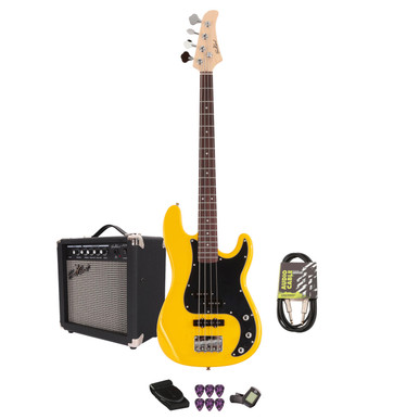EastCoast PJ4 Bass Guitar Starter Pack in Yellow with 15W Amp & Accessories