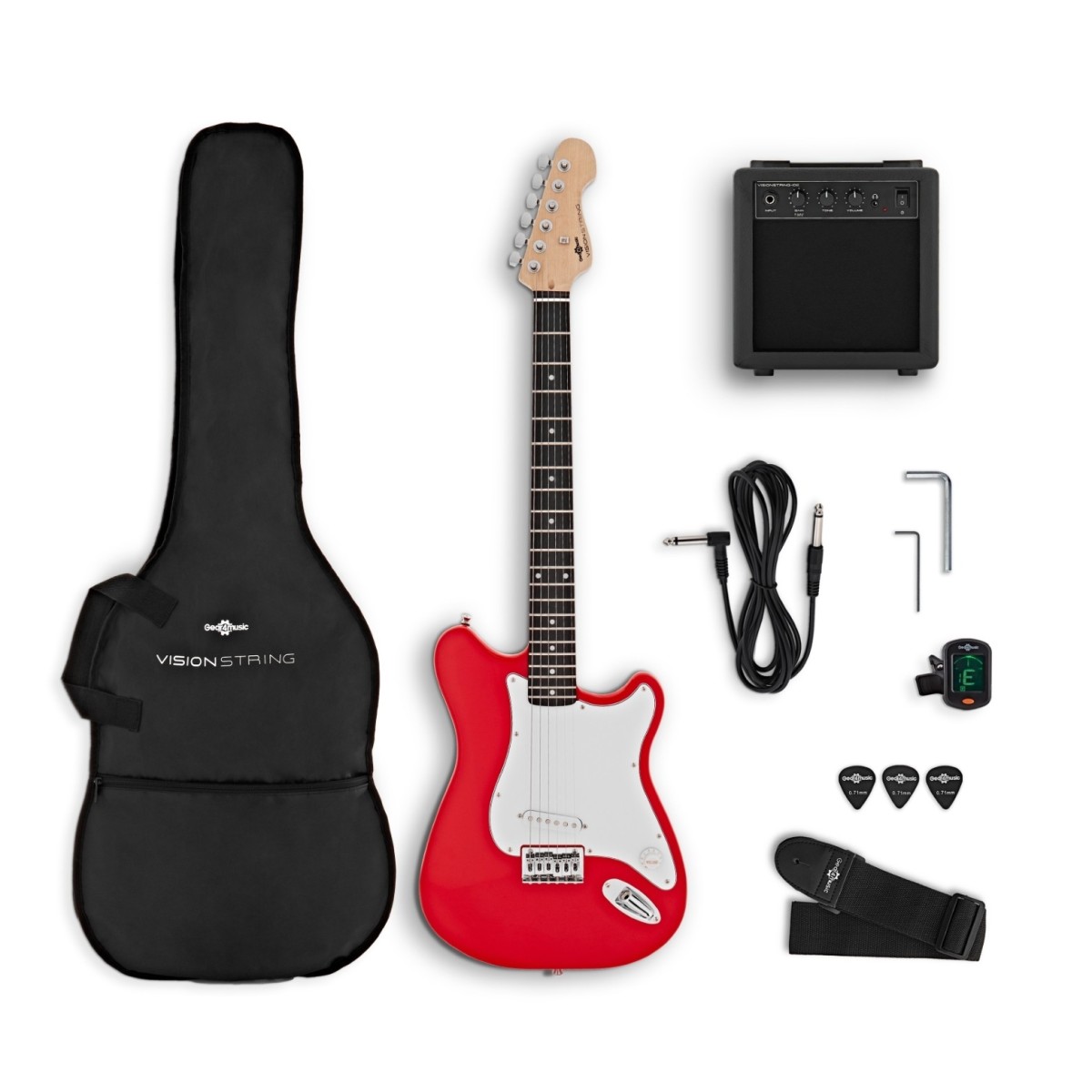 If you are looking for Guitars from , the 3/4 LA Electric Guitar by Gear4music Black is a great option. In stock, and ready to ship with fast, reliable delivery across the UK, Ireland, and Europe. For more details within Guitars, additional Electric Guitars options, full specifications, demos, images, videos, and secure online ordering, read on below. The 3/4 LA Electric Guitar by Gear4music has a short scale length and compact body tailored towards beginner guitarists offering a user-friendly platform that is perfect for younger players or anyone simply looking for a smaller instrument. Offering many of the same features found in their full-sized counterparts the 3/4 LAs boast great sound comfort and looks to keep players inspired as they learn. The LA guitars construction is deliberately lightweight and manageable with a reduced neck depth and width perfect for junior musicians. Plus in an effort to make getting started as simple as possible this beginner guitar comes pre-strung and set-up as standard eliminating the need for complex adjustments – simply give it a quick tune up and its ready to rock! This black 3/4 LA features three single-coil pickups and a five-way switch presenting a diverse range of sounds to explore and making the LA an ideal choice for new players yet to settle on a preferred style. In addition each LA guitar comes with essential accessories to maximize the playing experience including a cable for connecting to an amplifier strap gig bag and picks!