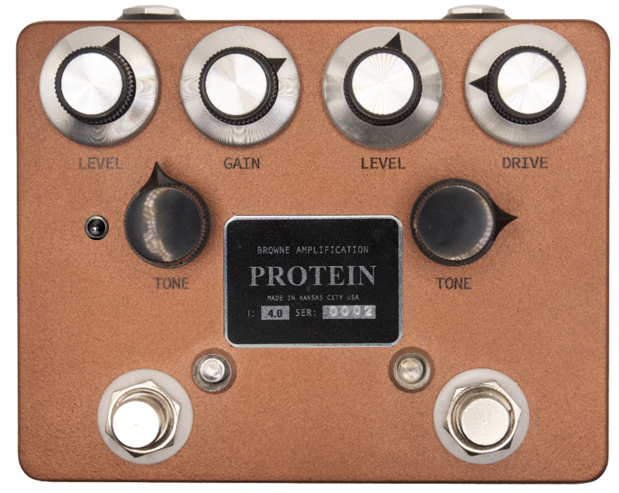 Guitars Pedals Amps & Stuff are excited this week as the almighty Browne Amplification The Protein V4 Dual Overdrive Pedal in Copper is now back in stock. These are built to an exceptionally high standard. We deliver Browne Amplification Guitar FX straight to your door via our tracked *roadie service* across the UK, Europe, and the USA. A firm favourite among the finest gear available in the UK. if you want the full low down, click through to the Browne Amplification crew direct for more details, images, specs, and all the good stuff. Browne Amplification The Protein V4 Dual Overdrive Pedal in Copper