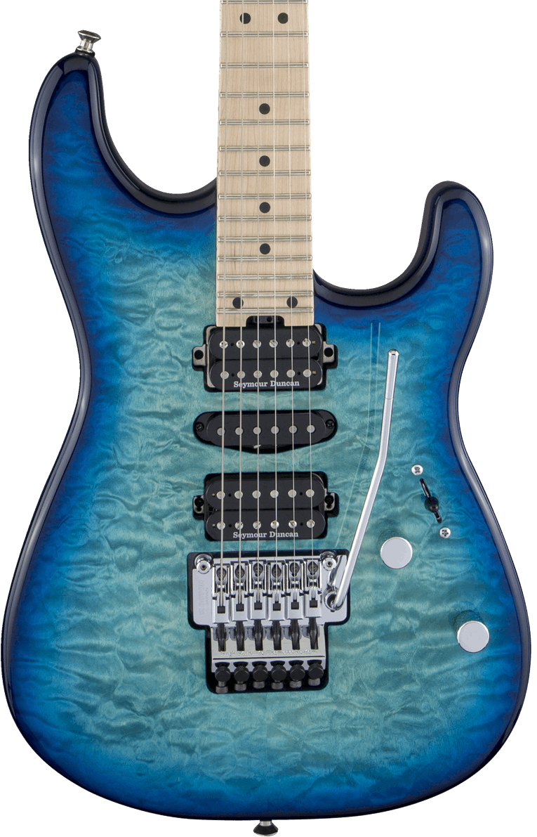 Guitars Pedals Amps & Stuff are excited this week as the almighty Charvel MJ San Dimas Style 1 HSH FR M QM Electric Guitar in Caribbean Burst is now back in stock. These are built to an exceptionally high standard. We deliver Charvel Electric Guitars straight to your door via our tracked *roadie service* across the UK, Europe, and the USA. A firm favourite among the finest gear available in the UK. if you want the full low down, click through to the Charvel crew direct for more details, images, specs, and all the good stuff. Charvel MJ San Dimas Style 1 HSH FR M QM Electric Guitar in Caribbean Burst