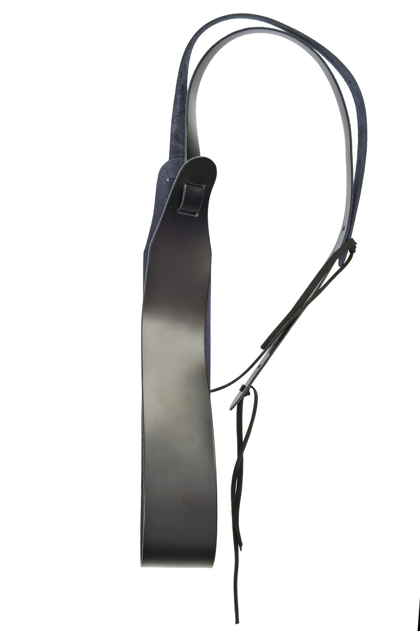 - Classic black leather banjo strap