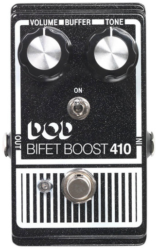 A simple and easy to use boost is all anyone wants. DigiTech have answered your prayers with the DOD Bifet Boost 410. Not only have they supplied you with ample amounts of boost, the Bifet includes a ‘tilt’ tone control with a unique buffer option. When the Buffer switch is disengaged, a true bypass is turned on allowing for the Bifet to become an unbuffered boost. When engaged this tidy little stompbox becomes a buffered boost. That simple!