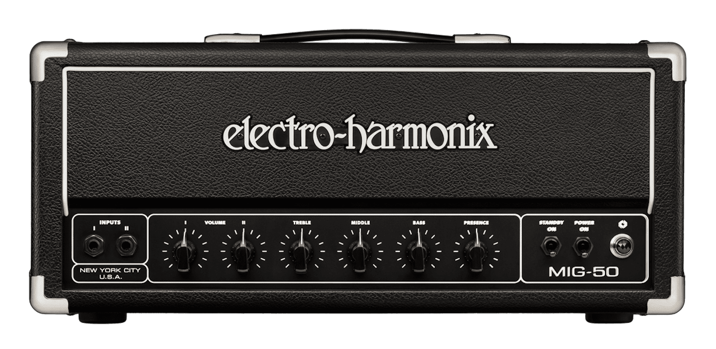 Guitars Pedals Amps & Stuff are in fine mood, we are now dropping the almighty Electro Harmonix MIG-50 50w Amp Head into your world. This is fresh in Bass Amps and Cabs, new, boxed, and transmitted your way by courier. No planet too small, no riff too loud. This is brand new gear, full warranty. Want the full details? Click through to the Electro Harmonix team direct, they have more details than we could ever be bothered to type out here. no one reads it Blaa Blaa Blaa, Go on, treat yourself. You deserve it. Electro Harmonix MIG-50 50w Amp Head
