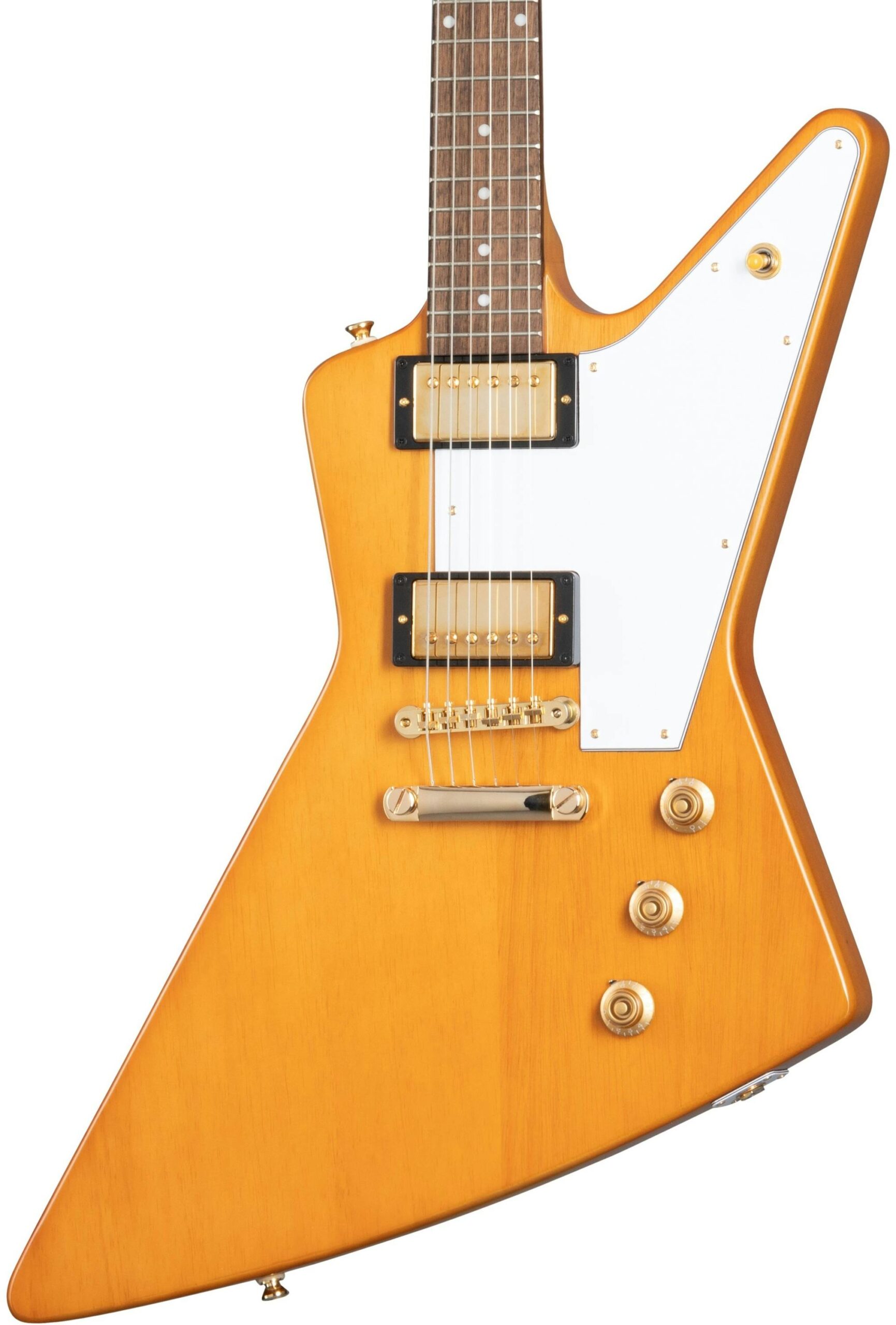 Guitars Pedals Amps & Stuff are excited this week as the almighty Epiphone 1958 Korina Explorer Electric Guitar in Aged Natural with White Pickguard is now back in stock. These are built to an exceptionally high standard. We deliver Epiphone Electric Guitars straight to your door via our tracked *roadie service* across the UK, Europe, and the USA. A firm favourite among the finest gear available in the UK. if you want the full low down, click through to the Epiphone crew direct for more details, images, specs, and all the good stuff. Epiphone 1958 Korina Explorer Electric Guitar in Aged Natural with White Pickguard