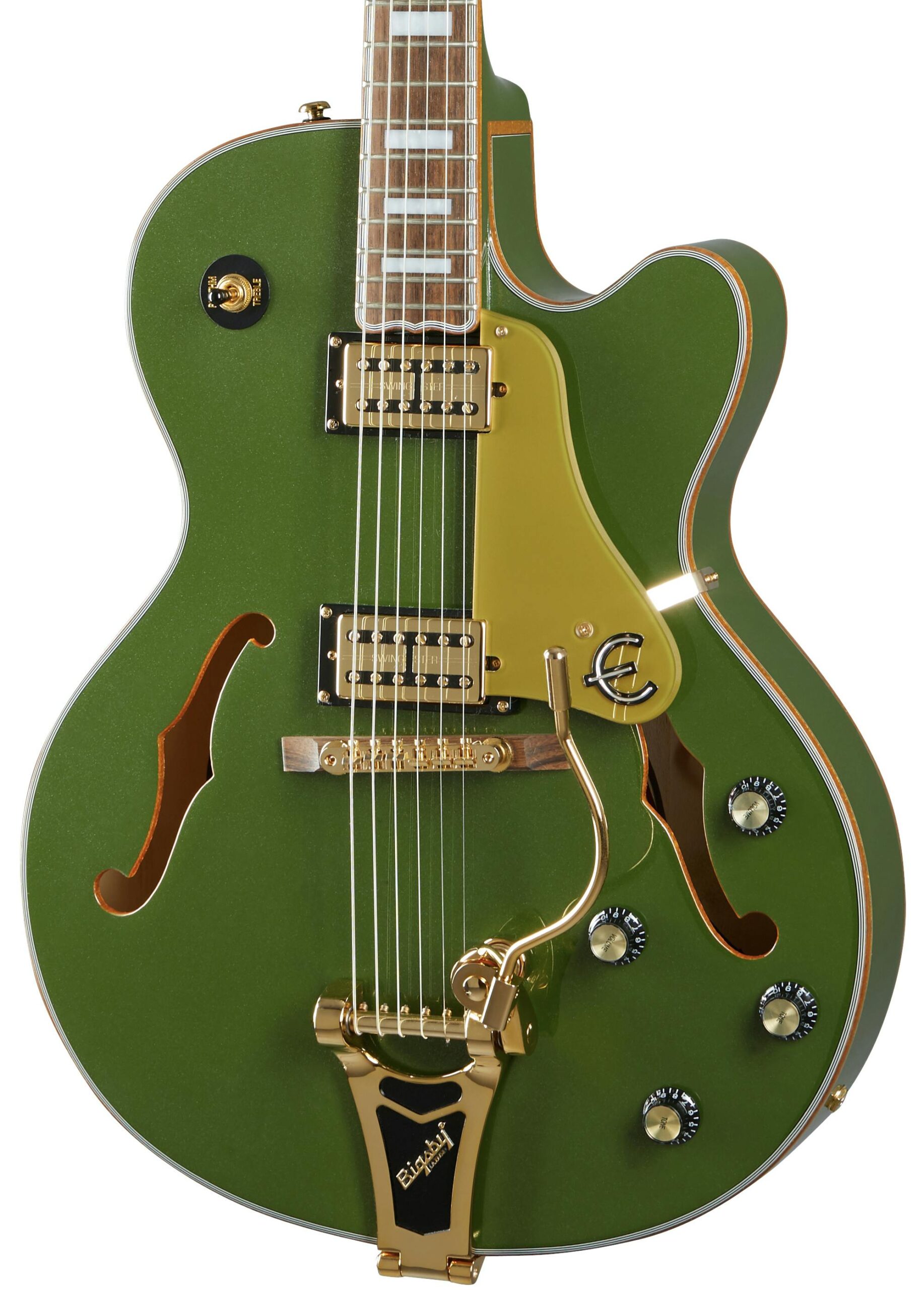 Guitars Pedals Amps & Stuff are excited this week as the almighty Epiphone Emperor Swingster in Forest Green Metallic is now back in stock. These are built to an exceptionally high standard. We deliver Epiphone Electric Guitars straight to your door via our tracked *roadie service* across the UK, Europe, and the USA. A firm favourite among the finest gear available in the UK. if you want the full low down, click through to the Epiphone crew direct for more details, images, specs, and all the good stuff. Epiphone Emperor Swingster in Forest Green Metallic