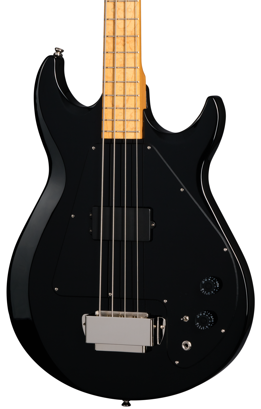 Bag. Bass Guitars — Bass guitars provide the deep, rhythmic foundation that drives most modern music styles. With their longer necks and thicker strings, they produce low-end tones that lock in with the drums to create groove and power. From smooth jazz and funk to heavy rock and metal, the bass guitar shapes the feel and energy of a song. Available in both four and five-string designs, and in passive or active electronic setups, they offer a wide range of tonal possibilities. Whether on stage or in the studio, bass guitars are essential for adding depth, rhythm, and balance to any musical performance.. Ebony.