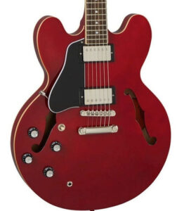 Forming part of Epiphone’s ‘Inspired by Gibson Custom Collection,’ the 1962 ES-335 is Epiphone’s take on one of the most instantly recognisable and quintessential semi-hollow electric guitar designs of the 20th century. With its signature F-shaped sound holes, distinct double cutaway body and glued-in Mahogany neck with elegantly bound dark Rosewood fingerboard, the ES-335 has been at the forefront of popular music from Jazz to Blues to Rock!