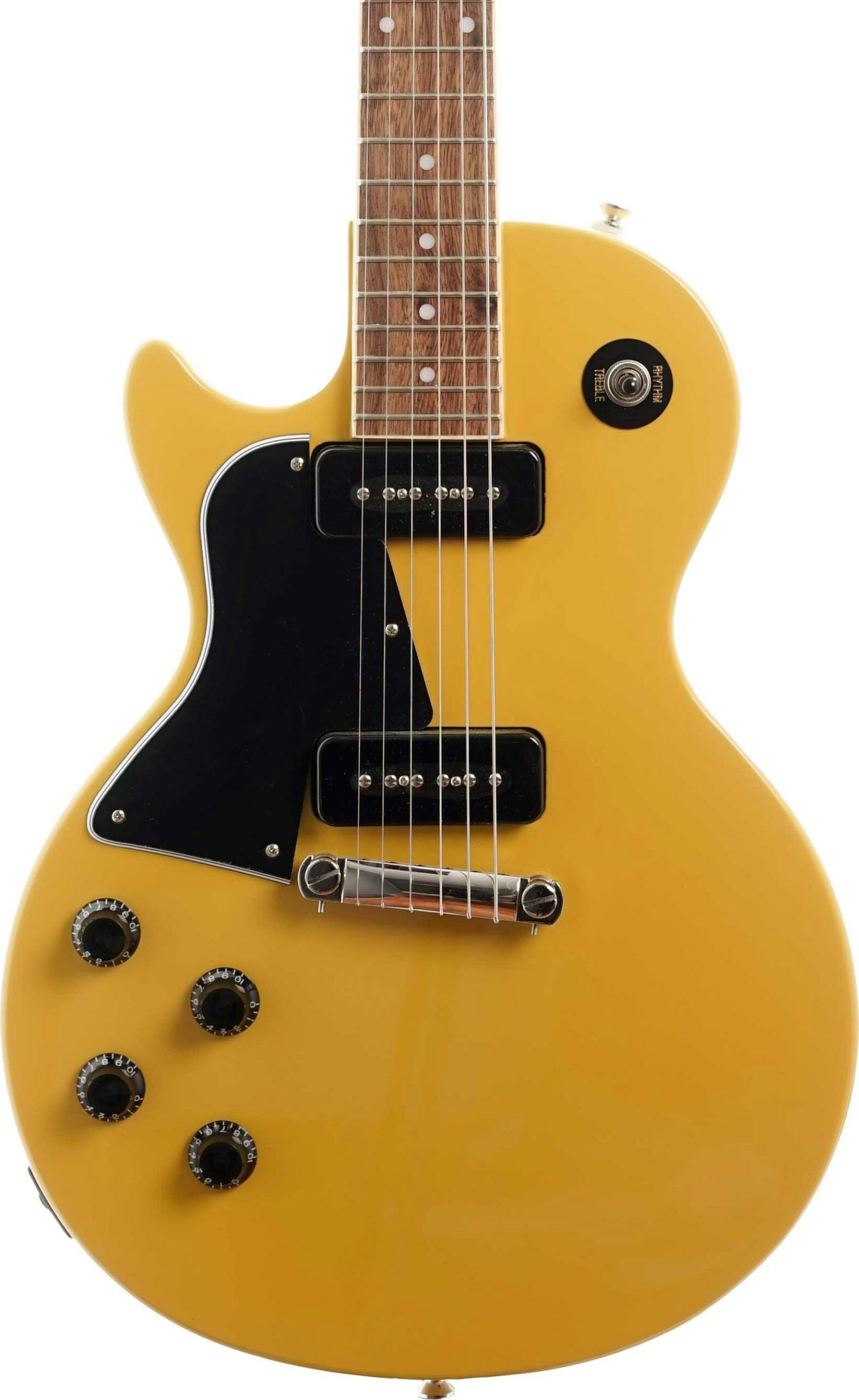 Guitars Pedals Amps & Stuff are excited this week as the almighty Epiphone Les Paul Special Left Handed Electric Guitar in TV Yellow is now back in stock. These are built to an exceptionally high standard. We deliver Epiphone Electric Guitars straight to your door via our tracked *roadie service* across the UK, Europe, and the USA. A firm favourite among the finest gear available in the UK. if you want the full low down, click through to the Epiphone crew direct for more details, images, specs, and all the good stuff. Epiphone Les Paul Special Left Handed Electric Guitar in TV Yellow