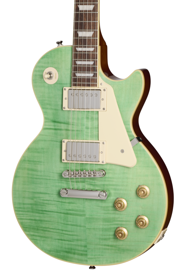 Guitars Pedals Amps & Stuff are excited this week as the almighty Epiphone Les Paul Standard 50s Figured in Seafoam Green is now back in stock. These are built to an exceptionally high standard. We deliver Epiphone Electric Guitars straight to your door via our tracked *roadie service* across the UK, Europe, and the USA. A firm favourite among the finest gear available in the UK. if you want the full low down, click through to the Epiphone crew direct for more details, images, specs, and all the good stuff. Epiphone Les Paul Standard 50s Figured in Seafoam Green