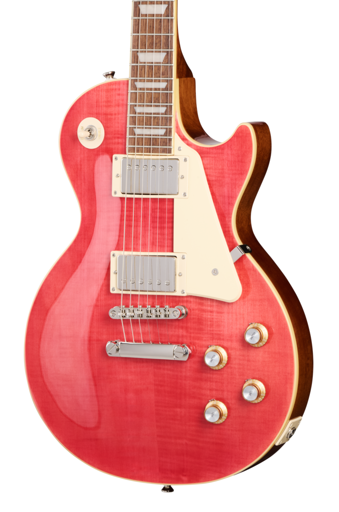 Guitars Pedals Amps & Stuff are excited this week as the almighty Epiphone Les Paul Standard 60s Figured in Fucshia is now back in stock. These are built to an exceptionally high standard. We deliver Epiphone Electric Guitars straight to your door via our tracked *roadie service* across the UK, Europe, and the USA. A firm favourite among the finest gear available in the UK. if you want the full low down, click through to the Epiphone crew direct for more details, images, specs, and all the good stuff. Epiphone Les Paul Standard 60s Figured in Fucshia