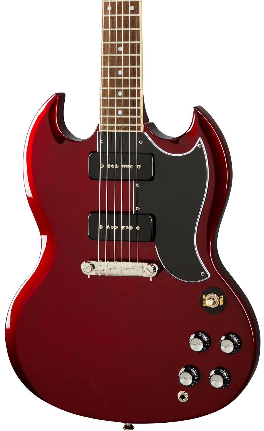 Guitars Pedals Amps & Stuff are excited this week as the almighty Epiphone SG Special P-90 In Sparkling Burgundy is now back in stock. These are built to an exceptionally high standard. We deliver Epiphone Electric Guitars straight to your door via our tracked *roadie service* across the UK, Europe, and the USA. A firm favourite among the finest gear available in the UK. if you want the full low down, click through to the Epiphone crew direct for more details, images, specs, and all the good stuff. Epiphone SG Special P-90 In Sparkling Burgundy