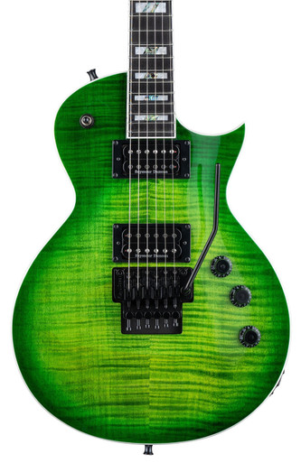 The ESP LTD AS-1FR, now updated in a stunning Lime Burst finish, combines premium craftsmanship with unmatched versatility. Designed in collaboration with Alex Skolnick, this guitar is built for expressive play and tonal precision. It features set-thru construction, a 24.75” scale, and a mahogany body with a flamed maple top that provides a rich, resonant sound with striking aesthetics. Equipped with a Floyd Rose 1000 tremolo, Seymour Duncan Alex Skolnick Signature Humbuckers, and advanced push-pull coil-splitting capabilities, this instrument is perfect for shredders, rockers, and tonal adventurers alike.