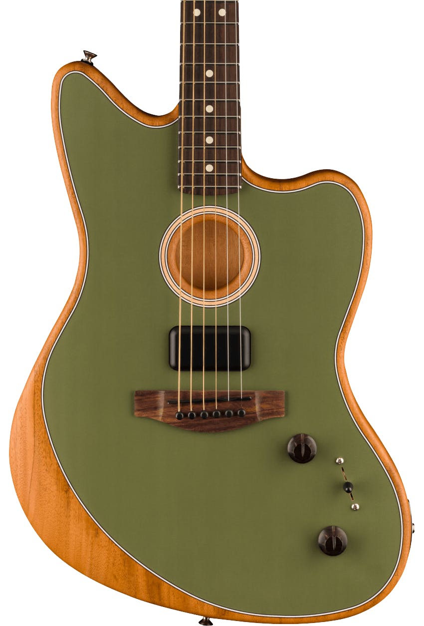 Guitars Pedals Amps & Stuff are excited this week as the almighty Fender Acoustasonic Player Jazzmaster Acoustic/Electric Guitar in Antique Olive is now back in stock. These are built to an exceptionally high standard. We deliver Fender Acoustic Guitars straight to your door via our tracked *roadie service* across the UK, Europe, and the USA. A firm favourite among the finest gear available in the UK. if you want the full low down, click through to the Fender crew direct for more details, images, specs, and all the good stuff. Fender Acoustasonic Player Jazzmaster Acoustic/Electric Guitar in Antique Olive
