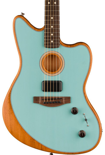 Fender continues to explore the sonic possibilities of an acoustic-electric hybrid guitar with the Acoustasonic Player Jazzmaster! Purposefully streamlined and equally versatile, this guitar intuitively transitions from acoustic to electric voices with the 3-way switch, or from clean to driven with a turn of the 'Blend' knob. The Acoustasonic Player Jazzmaster delivers unlimited inspiration, flexibility and accessibility for the next generation of modern musicians.