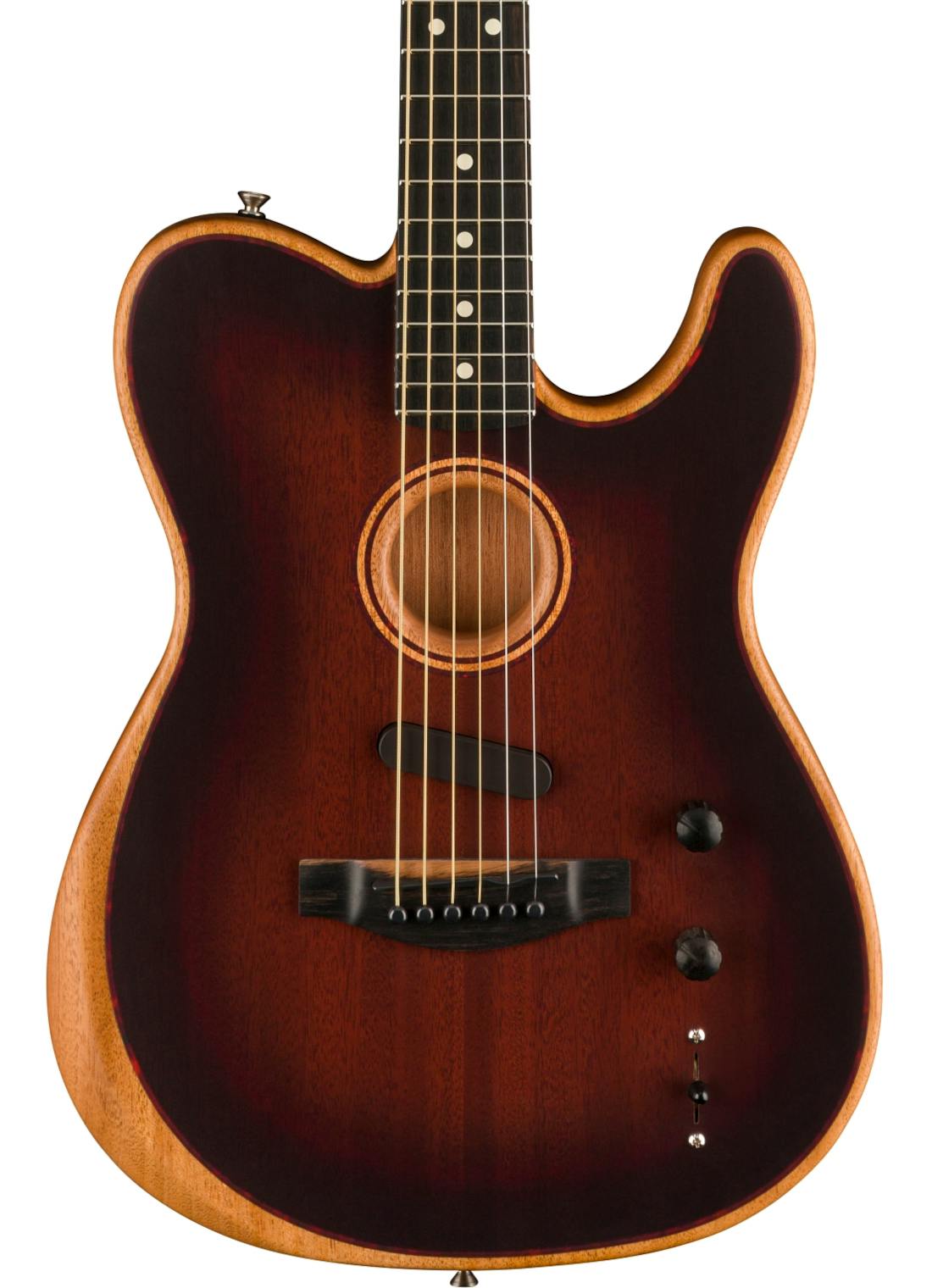 Guitars Pedals Amps & Stuff are excited this week as the almighty Fender American Acoustasonic Telecaster All-Mahogany Acoustic/Electric Guitar in Bourbon Burst is now back in stock. These are built to an exceptionally high standard. We deliver Fender Acoustic Guitars straight to your door via our tracked *roadie service* across the UK, Europe, and the USA. A firm favourite among the finest gear available in the UK. if you want the full low down, click through to the Fender crew direct for more details, images, specs, and all the good stuff. Fender American Acoustasonic Telecaster All-Mahogany Acoustic/Electric Guitar in Bourbon Burst