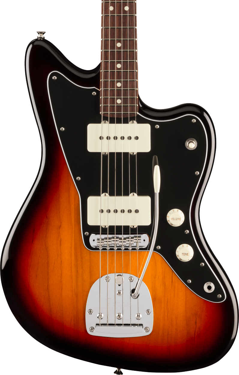 3-Colour. American. Classic. Electric Guitars — Electric guitars have shaped modern music with their versatility, power, and endless creative potential. Using magnetic pickups to convert string vibrations into electrical signals, they allow players to explore a vast range of tones through amplifiers and effects. From the smooth blues of a hollow body to the roaring crunch of a solid-body rock machine, electric guitars adapt to every genre and playing style. With designs from iconic makers like Fender, Gibson, and PRS, they remain the driving force behind rock, metal, jazz, and pop. Whether performing live or recording in the studio, electric guitars continue to inspire innovation and self-expression for musicians everywhere.. in. Jazzmaster — The Fender Jazzmaster was designed in the late 1950s for jazz players but quickly found fame in surf, alternative, and indie rock. Its offset body offers great comfort when seated, while the unique floating tremolo and wide single-coil pickups create warm, chimey tones with plenty of character. The rhythm and lead circuit switching opens up a world of tonal options. Loved by players who like to stand out — from surf pioneers to shoegaze icons — the Jazzmaster is all about individuality and feel.. Professional. Sunburst — Sunburst refers to a classic guitar finish that fades from a darker edge to a lighter centre, showcasing the natural beauty of the wood beneath. It’s one of the most recognisable and timeless looks in guitar design, adding depth, warmth, and vintage character to any instrument. Available in styles like two-tone, three-tone, and cherry sunburst, each variation brings its own personality and flair. Whether on an acoustic or electric guitar, a sunburst finish captures that perfect blend of tradition and style, making every instrument look as good as it sounds..