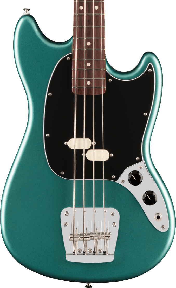 American. Bass. Bass Guitars — Bass guitars provide the deep, rhythmic foundation that drives most modern music styles. With their longer necks and thicker strings, they produce low-end tones that lock in with the drums to create groove and power. From smooth jazz and funk to heavy rock and metal, the bass guitar shapes the feel and energy of a song. Available in both four and five-string designs, and in passive or active electronic setups, they offer a wide range of tonal possibilities. Whether on stage or in the studio, bass guitars are essential for adding depth, rhythm, and balance to any musical performance.. Classic. Faded. in. Mustang —