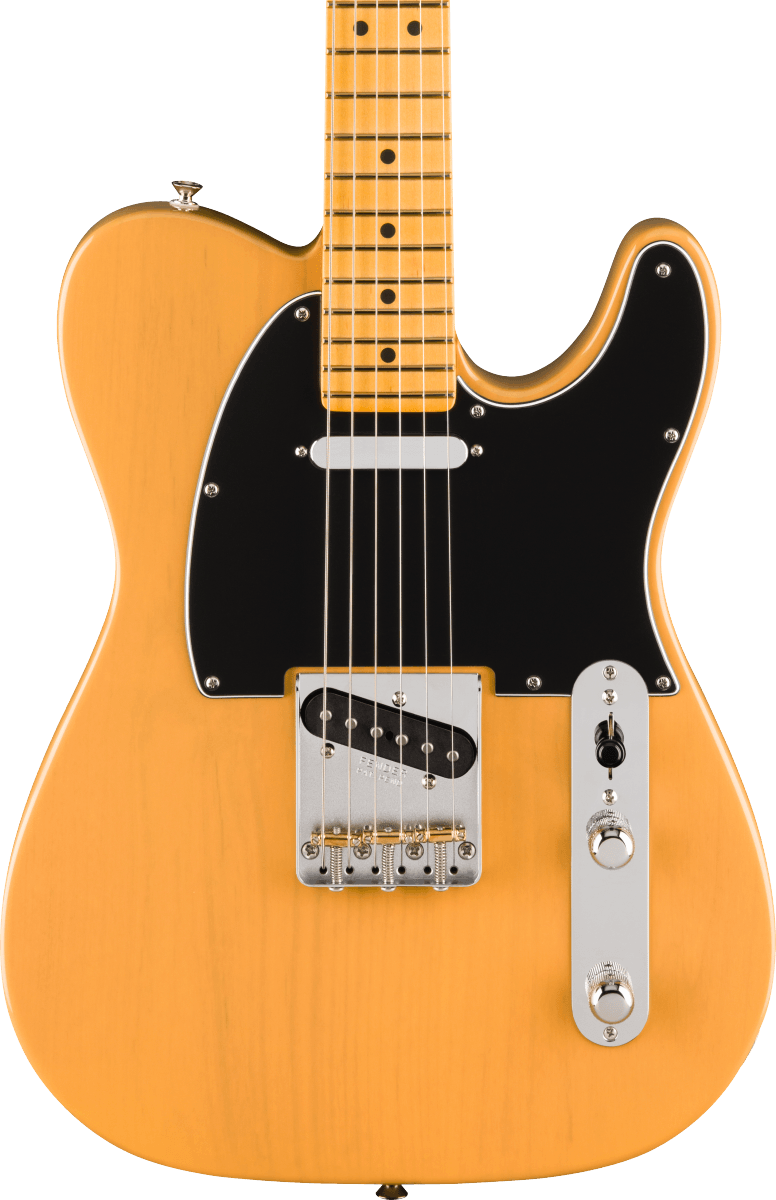 American. Blonde. Butterscotch. Classic. Electric Guitars — Electric guitars have shaped modern music with their versatility, power, and endless creative potential. Using magnetic pickups to convert string vibrations into electrical signals, they allow players to explore a vast range of tones through amplifiers and effects. From the smooth blues of a hollow body to the roaring crunch of a solid-body rock machine, electric guitars adapt to every genre and playing style. With designs from iconic makers like Fender, Gibson, and PRS, they remain the driving force behind rock, metal, jazz, and pop. Whether performing live or recording in the studio, electric guitars continue to inspire innovation and self-expression for musicians everywhere.. in. Professional. Telecaster — The Telecaster is one of the most iconic electric guitars ever made, first introduced by Fender in the early 1950s. Known for its simple design, solid body, and distinctive twang, it became the go-to instrument for country, rock, blues, and punk players alike. Its two single-coil pickups deliver bright, cutting tones with great clarity, making it perfect for both rhythm and lead work. The Tele’s bolt-on neck, smooth playability, and rugged build have helped it remain a timeless classic — a true workhorse guitar that’s still inspiring musicians over 70 years after its debut..