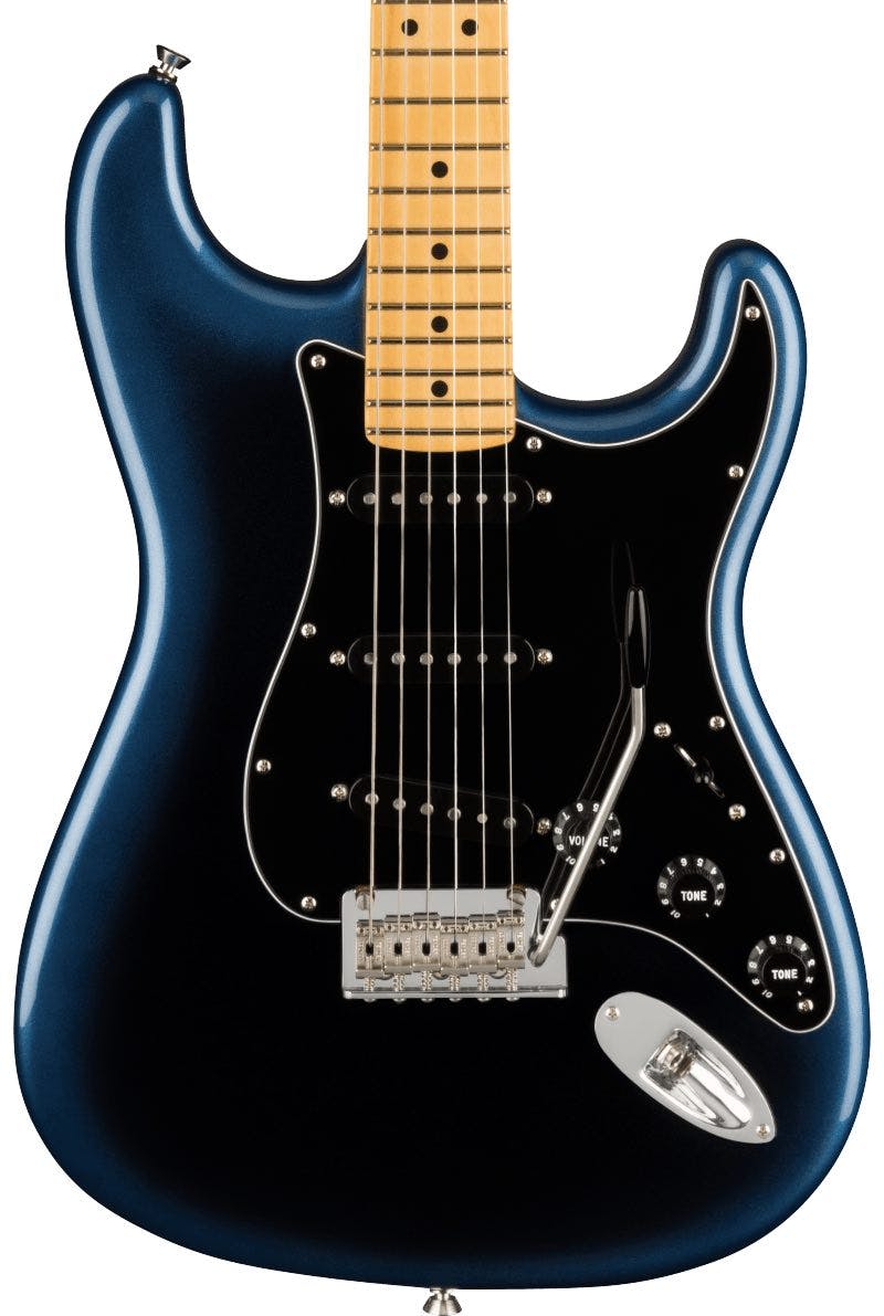 American. Electric Guitars — Electric guitars have shaped modern music with their versatility, power, and endless creative potential. Using magnetic pickups to convert string vibrations into electrical signals, they allow players to explore a vast range of tones through amplifiers and effects. From the smooth blues of a hollow body to the roaring crunch of a solid-body rock machine, electric guitars adapt to every genre and playing style. With designs from iconic makers like Fender, Gibson, and PRS, they remain the driving force behind rock, metal, jazz, and pop. Whether performing live or recording in the studio, electric guitars continue to inspire innovation and self-expression for musicians everywhere.. Night. Professional. Stratocaster — The Fender Strat – Stratocaster is one of the most iconic electric guitars ever made, celebrated for its sleek design, versatility, and instantly recognisable tone. Introduced in 1954, its contoured double-cutaway body, three single-coil pickups, and tremolo bridge set a new standard for comfort and sound flexibility. The Strat’s bright, expressive voice has defined countless genres, from blues and surf rock to funk and modern pop. Played by legends like Jimi Hendrix, Eric Clapton, and David Gilmour, the Stratocaster remains a symbol of creativity and innovation, offering players endless tonal possibilities and a timeless feel that continues to inspire generations..