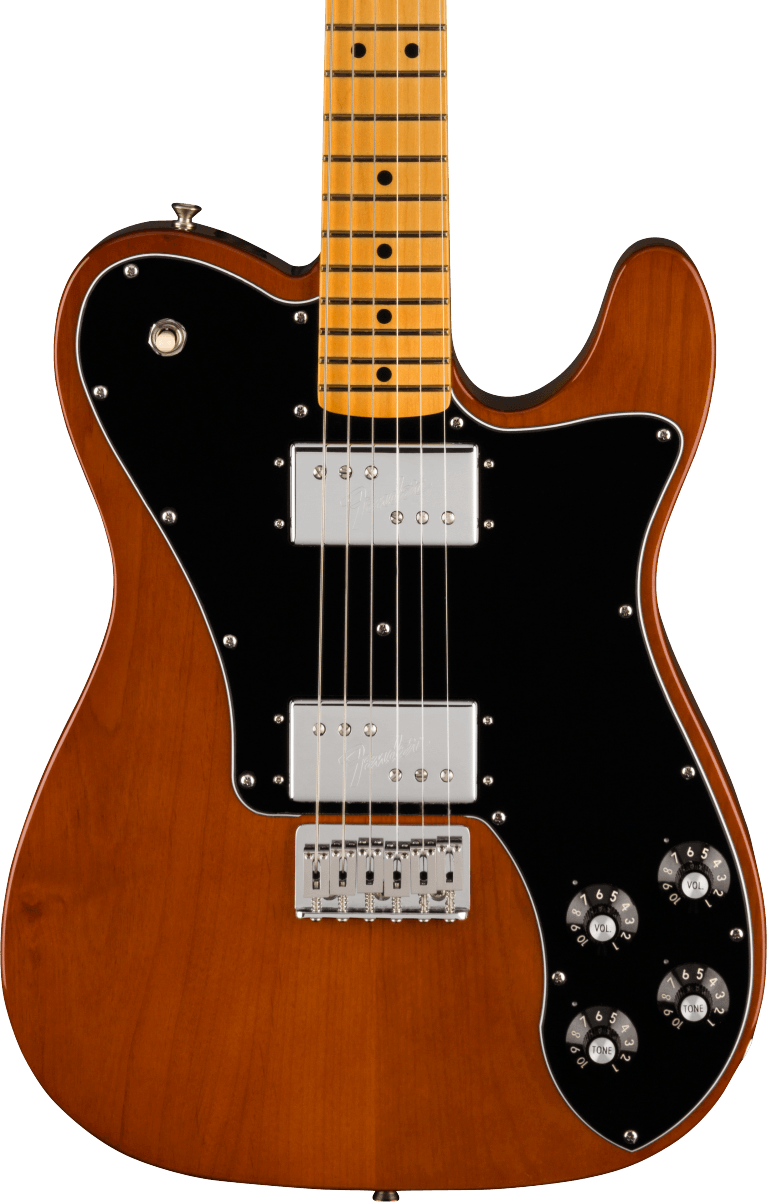 American. Deluxe. Electric Guitars — Electric guitars have shaped modern music with their versatility, power, and endless creative potential. Using magnetic pickups to convert string vibrations into electrical signals, they allow players to explore a vast range of tones through amplifiers and effects. From the smooth blues of a hollow body to the roaring crunch of a solid-body rock machine, electric guitars adapt to every genre and playing style. With designs from iconic makers like Fender, Gibson, and PRS, they remain the driving force behind rock, metal, jazz, and pop. Whether performing live or recording in the studio, electric guitars continue to inspire innovation and self-expression for musicians everywhere.. Telecaster — The Telecaster is one of the most iconic electric guitars ever made, first introduced by Fender in the early 1950s. Known for its simple design, solid body, and distinctive twang, it became the go-to instrument for country, rock, blues, and punk players alike. Its two single-coil pickups deliver bright, cutting tones with great clarity, making it perfect for both rhythm and lead work. The Tele’s bolt-on neck, smooth playability, and rugged build have helped it remain a timeless classic — a true workhorse guitar that’s still inspiring musicians over 70 years after its debut..
