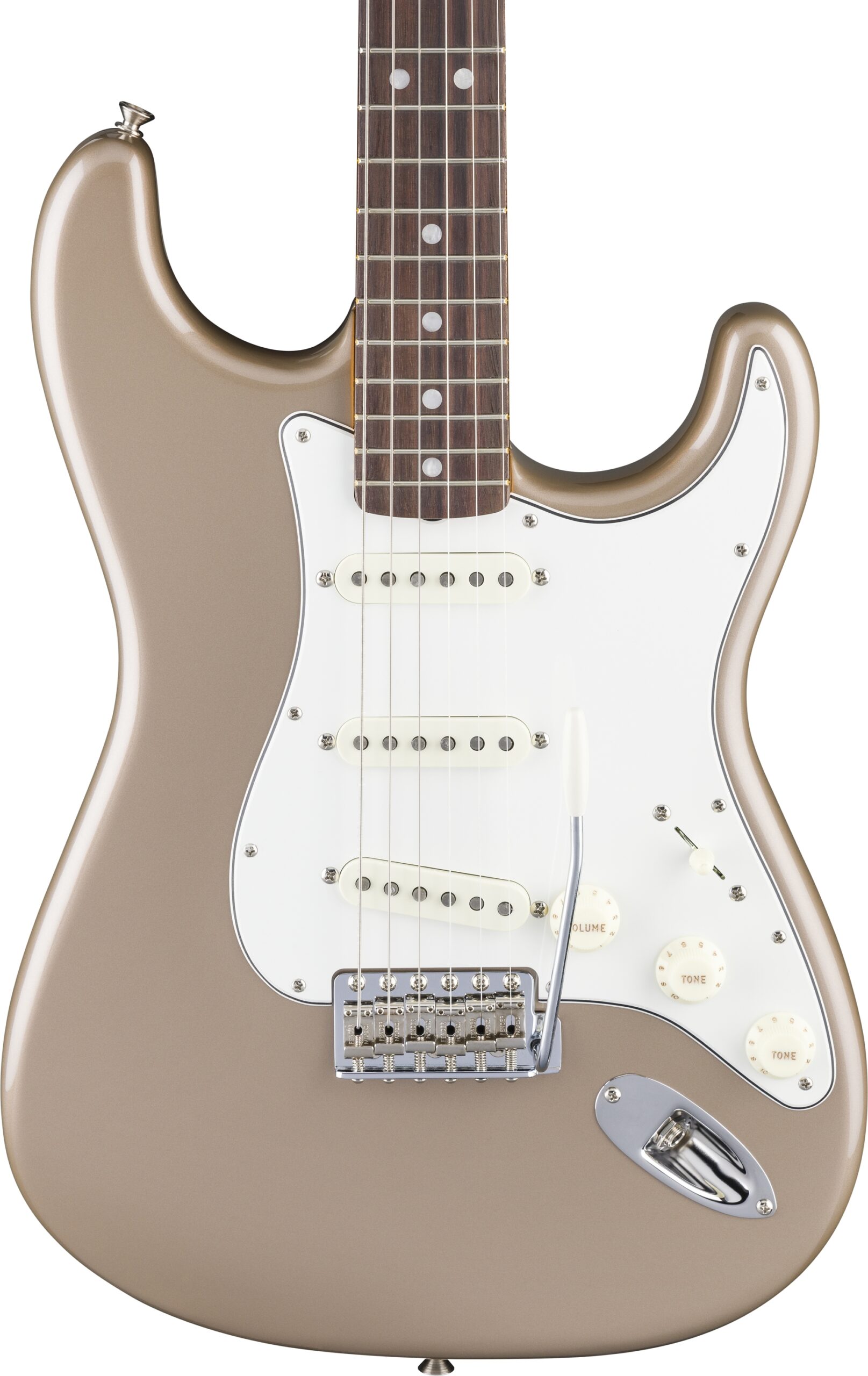 65. American. Electric Guitars — Electric guitars have shaped modern music with their versatility, power, and endless creative potential. Using magnetic pickups to convert string vibrations into electrical signals, they allow players to explore a vast range of tones through amplifiers and effects. From the smooth blues of a hollow body to the roaring crunch of a solid-body rock machine, electric guitars adapt to every genre and playing style. With designs from iconic makers like Fender, Gibson, and PRS, they remain the driving force behind rock, metal, jazz, and pop. Whether performing live or recording in the studio, electric guitars continue to inspire innovation and self-expression for musicians everywhere.. Gold. Stratocaster — The Fender Strat – Stratocaster is one of the most iconic electric guitars ever made, celebrated for its sleek design, versatility, and instantly recognisable tone. Introduced in 1954, its contoured double-cutaway body, three single-coil pickups, and tremolo bridge set a new standard for comfort and sound flexibility. The Strat’s bright, expressive voice has defined countless genres, from blues and surf rock to funk and modern pop. Played by legends like Jimi Hendrix, Eric Clapton, and David Gilmour, the Stratocaster remains a symbol of creativity and innovation, offering players endless tonal possibilities and a timeless feel that continues to inspire generations..