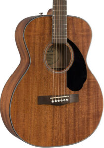 The CC-60S has a Concert shape which is towards the smaller end of acoustic body shapes. It’s a comfortable shape that doesn’t feel cumbersome to play, especially useful for players with smaller frames. The body shape provides a versatile sound that’s good for any style of playing but is particularly well-suited to fingerpicking. The body itself is made from laminate mahogany with a solid spruce top for a resonant and balanced tone.