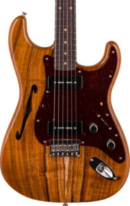 Fender® Custom Shop Dual-Mag II Stratocaster® pickups produce well-balanced tone with shimmering, clear highs and rich lows courtesy of a mix of alnico magnets. Featuring unbeveled alnico 5 magnets from the low E through G and hand-beveled alnico 2 magnets for the B and high E. Additionally, each pickup is wrapped with copper shielding tape to reduce noise.
