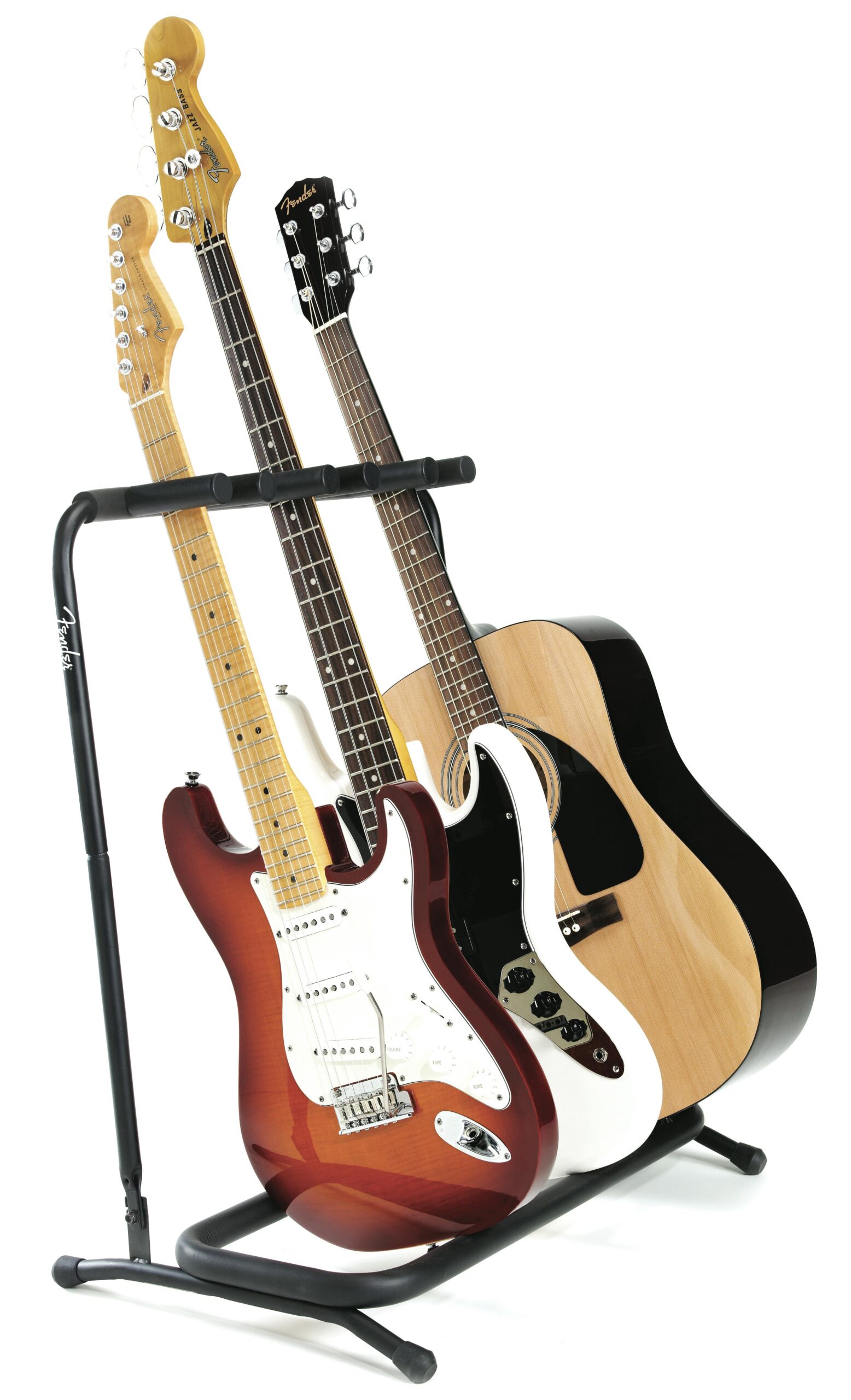 The Fender Multi Folding Guitar Stand keeps your guitars and basses readily at hand easily and conveniently. Perfect for stage and studio alike, it comes in three- and five-instrument models that fold up neatly and compactly. Sturdy steel frame with nitro finish-friendly foam padding holds electric and acoustic guitars and basses.