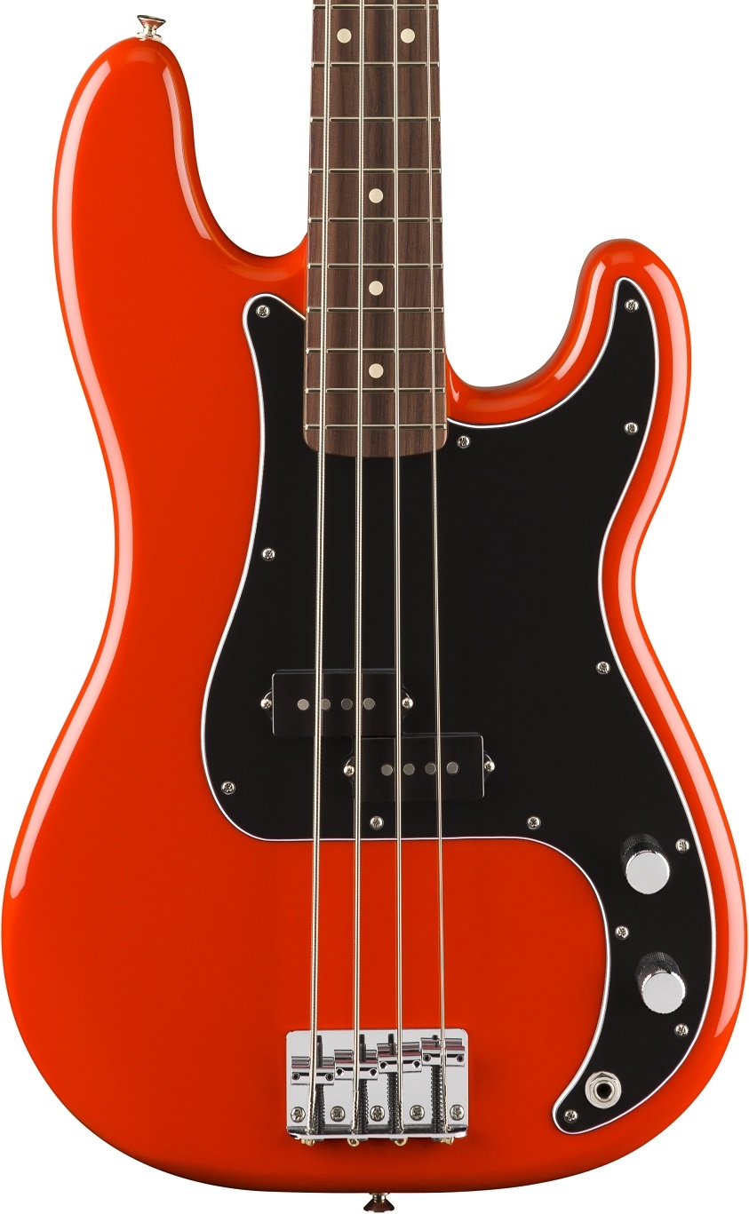 Bass Guitars — Bass guitars provide the deep, rhythmic foundation that drives most modern music styles. With their longer necks and thicker strings, they produce low-end tones that lock in with the drums to create groove and power. From smooth jazz and funk to heavy rock and metal, the bass guitar shapes the feel and energy of a song. Available in both four and five-string designs, and in passive or active electronic setups, they offer a wide range of tonal possibilities. Whether on stage or in the studio, bass guitars are essential for adding depth, rhythm, and balance to any musical performance.. Coral. Player. Precision. Rosewood.