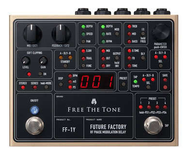 This unparalleled delay effect unit Future Factory FF-1Y is the fruit of Free The Tone’s continuous pursuit of sound quality and new functionality, and the culmination of our latest creative endeavors. This delay unit will surely stimulate your imagination and inspire you to create new and original sounds.