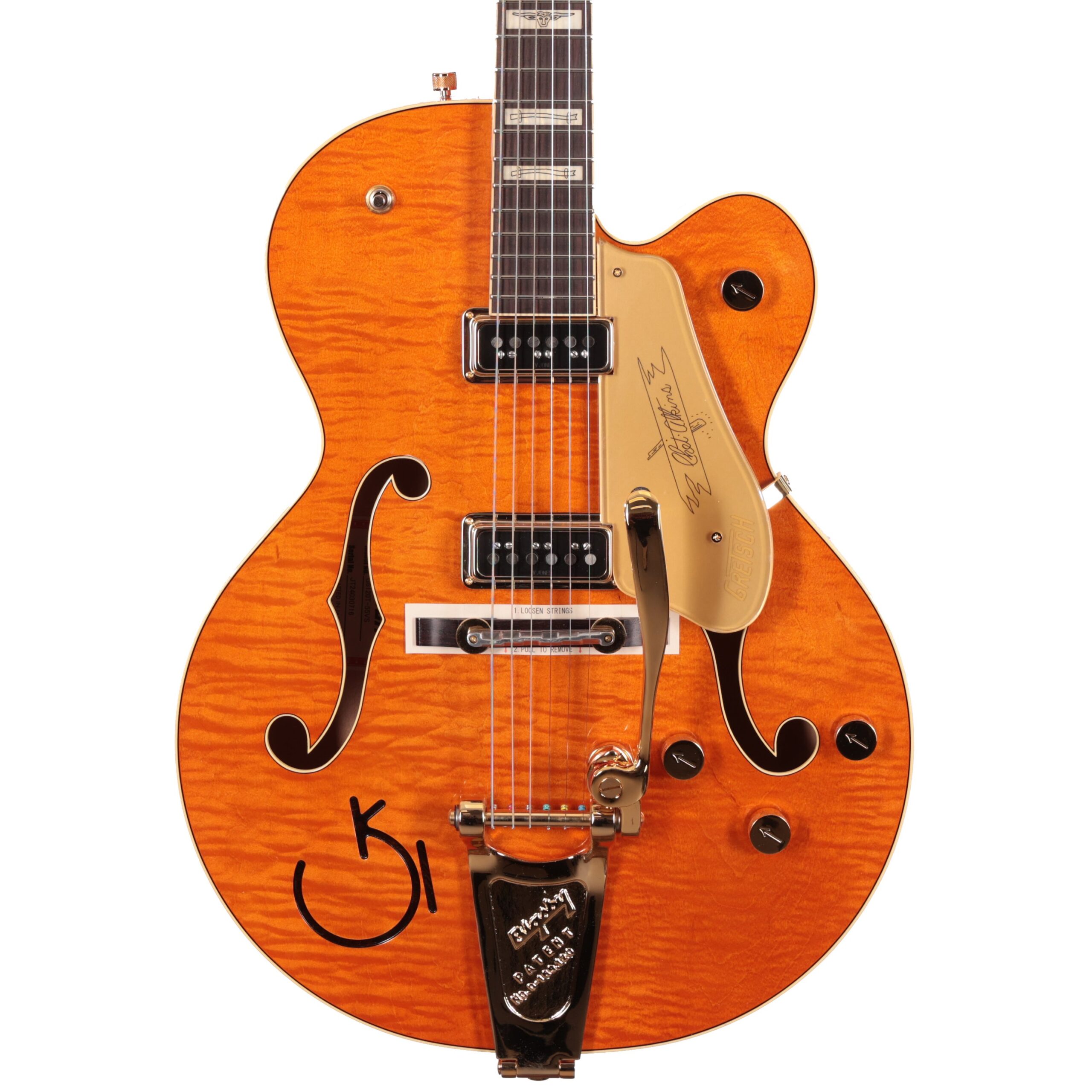 • Pickguard: Gold Plexi with Black Gretsch Logo and Artist Signature Signpost Graphic