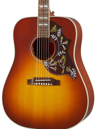 The unmistakable Gibson Hummingbird is followed by the masses as one of the most remarkable acoustic guitars ever built. The new Hummingbird Original blends vintage appointments and today's modern, high-quality build construction. Outfitted with gold Gotoh Keystone tuners, double antiqued binding, a traditional Hummingbird truss rod cover, and a bone nut and saddle, it's available in Antique Natural or Heritage Cherry Sunburst finish.