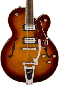 Gretsch guitars are renowned for their distinctive tone, vintage style, and craftsmanship that has defined rockabilly, country, and classic rock for decades. Founded in Brooklyn in 1883, Gretsch became iconic through artists like Chet Atkins, George Harrison, and Brian Setzer, whose twangy, resonant sound came from the brand’s signature hollow and semi-hollow body designs. With features such as Filter’Tron pickups, Bigsby tremolos, and ornate finishes, Gretsch guitars blend elegance with attitude. Whether it’s the warm chime of a White Falcon or the punch of a Duo Jet, Gretsch instruments continue to offer timeless character and individuality for players who want something truly unique.