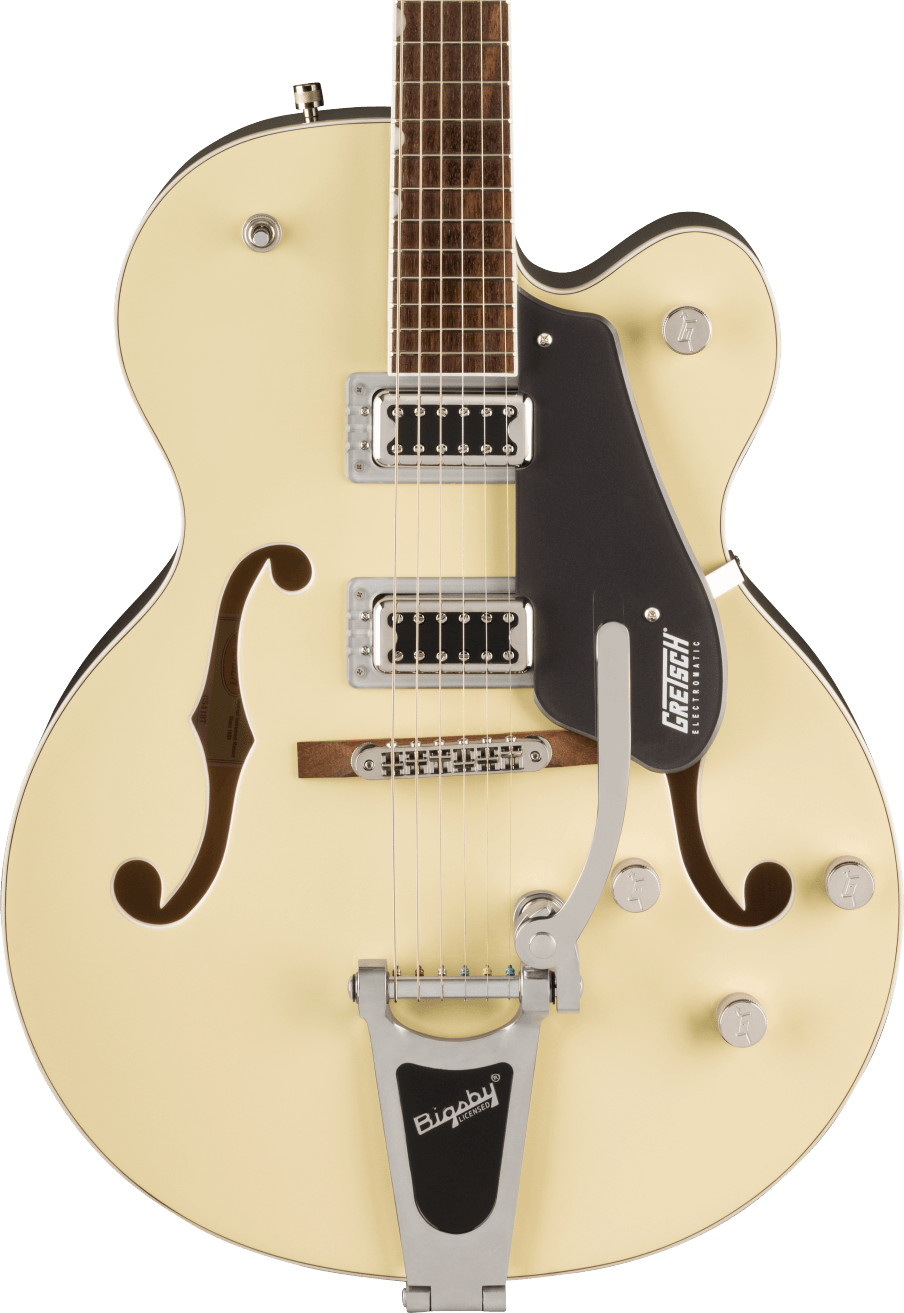 Guitars Pedals Amps & Stuff are excited this week as the almighty Gretsch Electromatic G5420T Classic Hollow Body Bigsby in Vintage White/London Grey is now back in stock. These are built to an exceptionally high standard. We deliver Gretsch Electric Guitars straight to your door via our tracked *roadie service* across the UK, Europe, and the USA. A firm favourite among the finest gear available in the UK. if you want the full low down, click through to the Gretsch crew direct for more details, images, specs, and all the good stuff. Gretsch Electromatic G5420T Classic Hollow Body Bigsby in Vintage White/London Grey