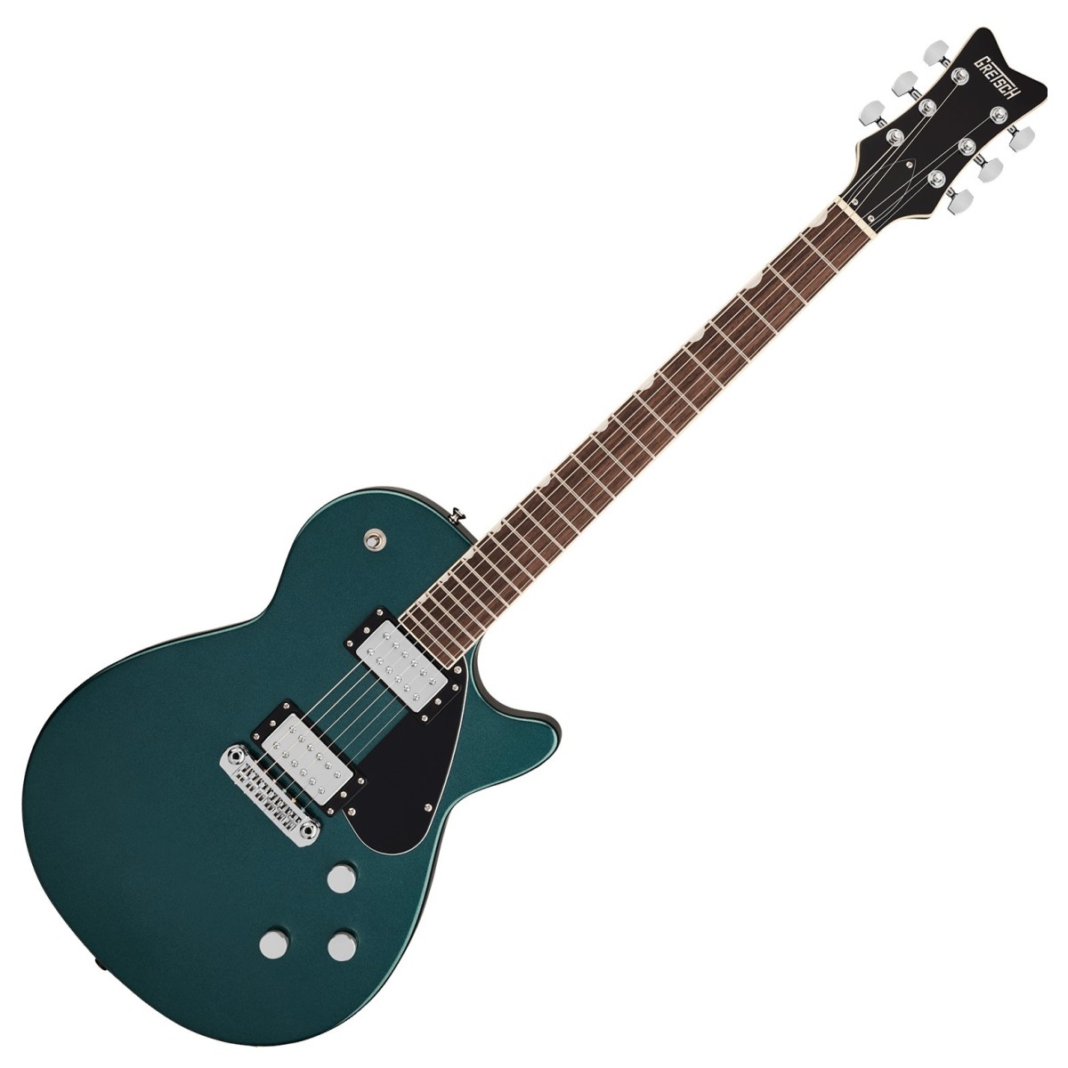 If you are looking for Guitars from Gretsch, the Gretsch Electromatic Jet Club RW Riviera Blue is a great option. In stock, and ready to ship with fast, reliable delivery across the UK, Ireland, and Europe. For more details within Guitars, additional Electric Guitars options, full specifications, demos, images, videos, and secure online ordering, read on below. The Gretsch Electromatic Jet Club RW is a sleek single-cut built for comfort and punchy tone. A chambered mahogany body keeps the weight down and adds airy resonance while the sculpted contours and rounded heel sit snugly against the player. The Performance C neck pairs with a bound rosewood fingerboard 12″ radius and medium jumbo frets for a smooth tidy feel across chords and bends. Finished in high-gloss Riviera Blue with aged-white details and nickel hardware it nails that essential Jet character without unnecessary fuss Brining the tone a PureVolt Twin Six humbucker set dishes out everything from clear chiming cleans to a satisfyingly driven roar. Push-pull coil-splits on both tone controls unlock crisp single-coil sparkle and a treble-bleed on the master volume keeps highs intact as you roll back for rhythm work. The LockDown locking wraparound bridge adds sustain and rock-solid intonation backed up by sealed die-cast tuners and vintage-style strap buttons. Flick the three-way toggle and youve got a versatile spread of sounds ready for indie jangle classic rock crunch and modern pop gigs alike
