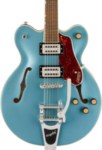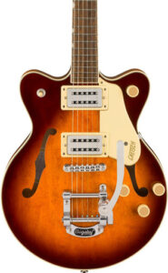 Gretsch guitars are renowned for their distinctive tone, vintage style, and craftsmanship that has defined rockabilly, country, and classic rock for decades. Founded in Brooklyn in 1883, Gretsch became iconic through artists like Chet Atkins, George Harrison, and Brian Setzer, whose twangy, resonant sound came from the brand’s signature hollow and semi-hollow body designs. With features such as Filter’Tron pickups, Bigsby tremolos, and ornate finishes, Gretsch guitars blend elegance with attitude. Whether it’s the warm chime of a White Falcon or the punch of a Duo Jet, Gretsch instruments continue to offer timeless character and individuality for players who want something truly unique.