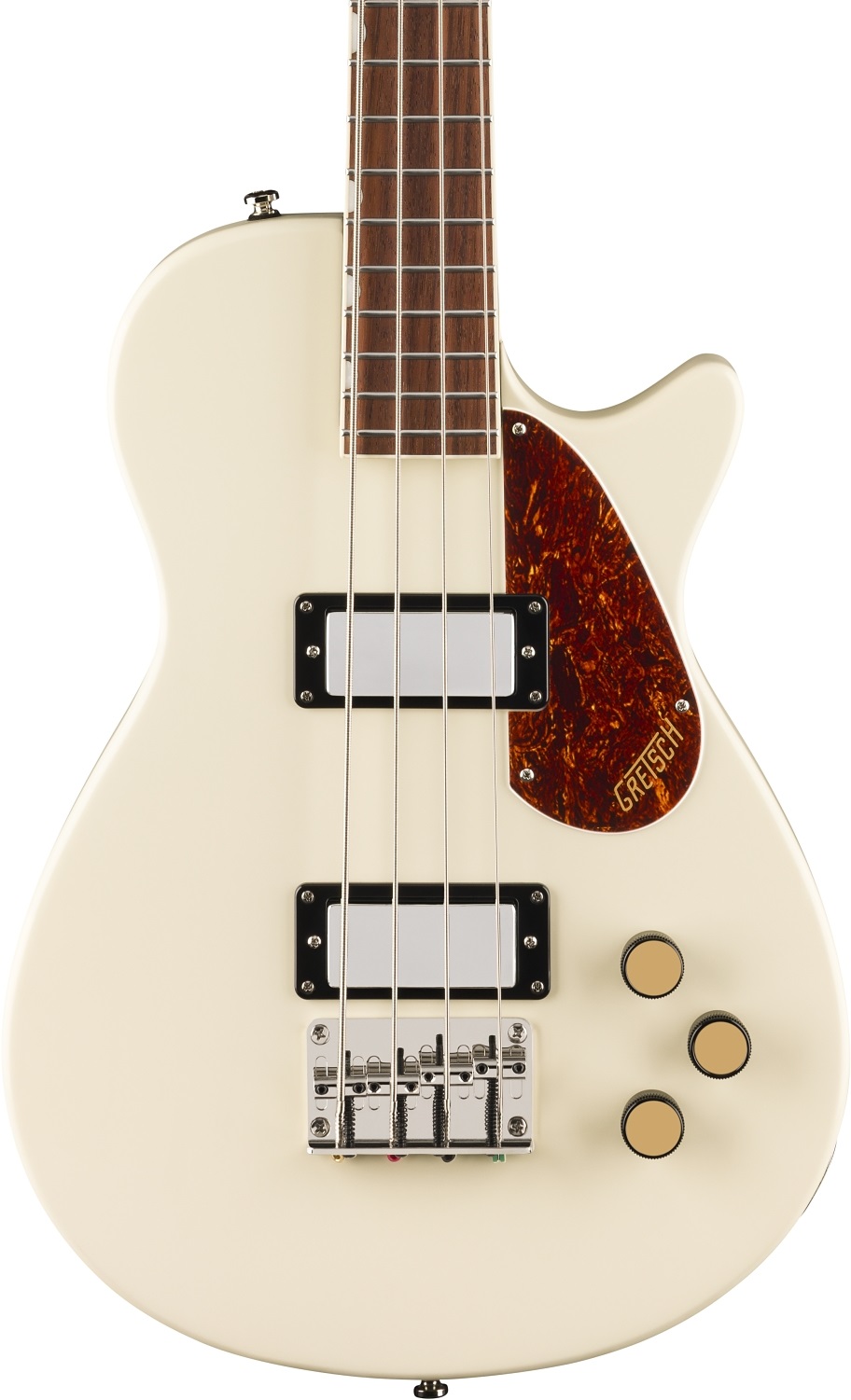 Guitars Pedals Amps & Stuff are excited this week as the almighty Gretsch Streamliner Jet Club Single-Cut Bass Guitar in Vintage White is now back in stock. These are built to an exceptionally high standard. We deliver Gretsch Bass Guitars straight to your door via our tracked *roadie service* across the UK, Europe, and the USA. A firm favourite among the finest gear available in the UK. if you want the full low down, click through to the Gretsch crew direct for more details, images, specs, and all the good stuff. Gretsch Streamliner Jet Club Single-Cut Bass Guitar in Vintage White