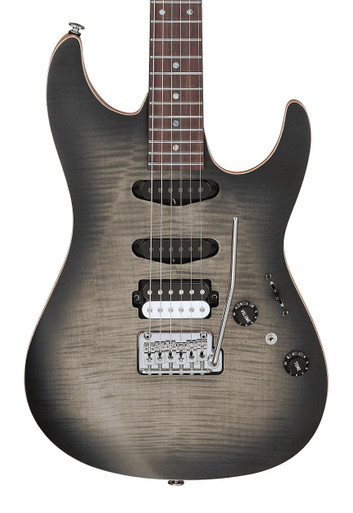 For starters, check out the awe-inspiring charcoal flame Maple top with a scraped binding, and then for the main course, check out some of the key features that make this guitar such a stand-out machine, such as the critically acclaimed Gotoh hardware, a very stable roasted Maple neck for superior tuning stability, and the ergonomic body carves which make this guitar wonderfully comfortable to play.