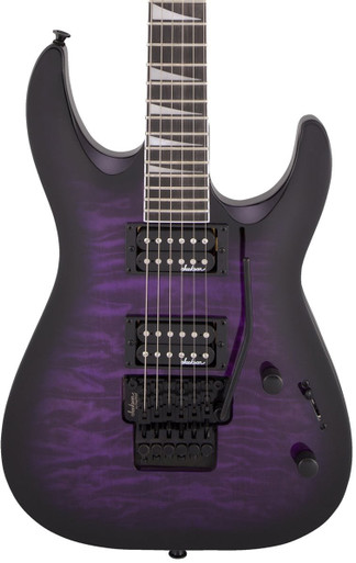 Sporting classic Jackson style, the JS32Q DKA is wrapped in Transparent Green Burst or Transparent Purple Burst finishes with our signature pointy black headstock and all-black hardware, including the standard strap buttons and sealed die-cast tuners.