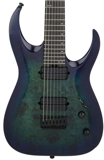 The Pro Series Signature Misha Mansoor Juggernaut HT7P offers a 26.5” scale length and resonant Basswood body with a distinct Poplar burl top.