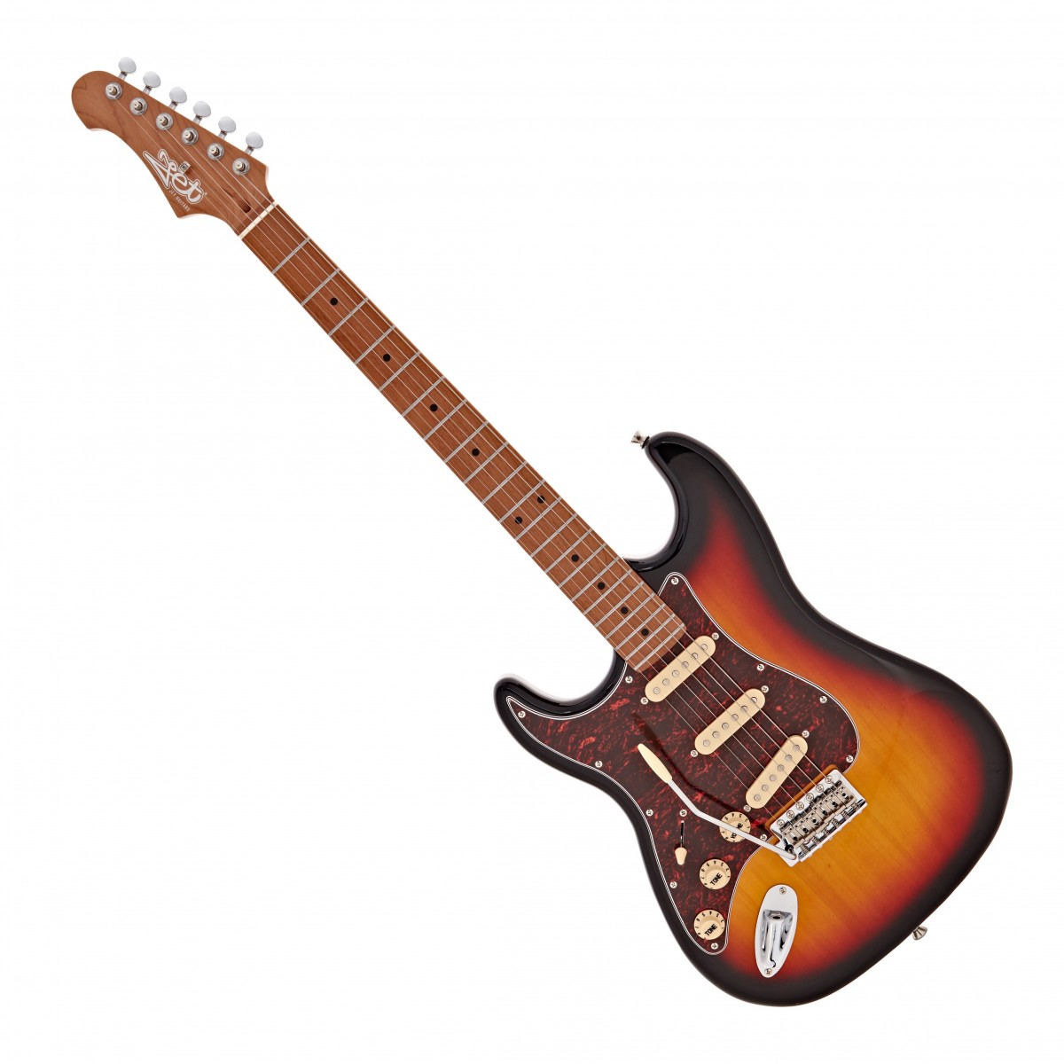 If you are looking for Guitars from JET Guitars, the JET Guitars JS-400 Roasted Maple Left Handed Sunburst is a great option. In stock, and ready to ship with fast, reliable delivery across the UK, Ireland, and Europe. For more details within Guitars, additional Electric Guitars options, full specifications, demos, images, videos, and secure online ordering, read on below. The Jet Guitars JS-400 Roasted Maple Left Handed is an approachable guitar with classy looks and exciting tones. Offering raucous punchy sounds from a bridge mounted humbucker you can cut through a mix with searing rock leads and crunchy chords. Add to that the smooth twangy clucks and honks from two single coils and the JS-400 is capable of a staggering array of tones. Its not just about the sounds though because this sleek guitar boasts a classy retro aesthetic. Presenting a basswood body thats dressed in a Sunburst finish and loaded with premium chrome hardware itll keep all eyes locked on you. Together with a rich dark roasted maple fretboard in a modern 9.5″ radius itll be hard to put this guitar down. And not only that but a bone nut and tremolo bridge ensure youll enjoy stable performances with vocal clear string vibrations. For articulate tones classic looks and a modern playability the JS-400 is the ideal choice.