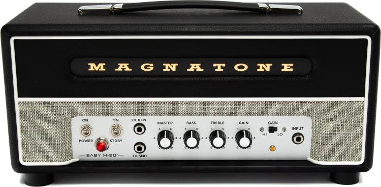 Guitars Pedals Amps & Stuff are in fine mood, we are now dropping the almighty Magnatone Baby M-80 12W Valve Amp Head into your world. This is fresh in Guitar Amps and Cabs, new, boxed, and transmitted your way by courier. No planet too small, no riff too loud. This is brand new gear, full warranty. Want the full details? Click through to the Magnatone team direct, they have more details than we could ever be bothered to type out here. no one reads it Blaa Blaa Blaa, Go on, treat yourself. You deserve it. Magnatone Baby M-80 12W Valve Amp Head