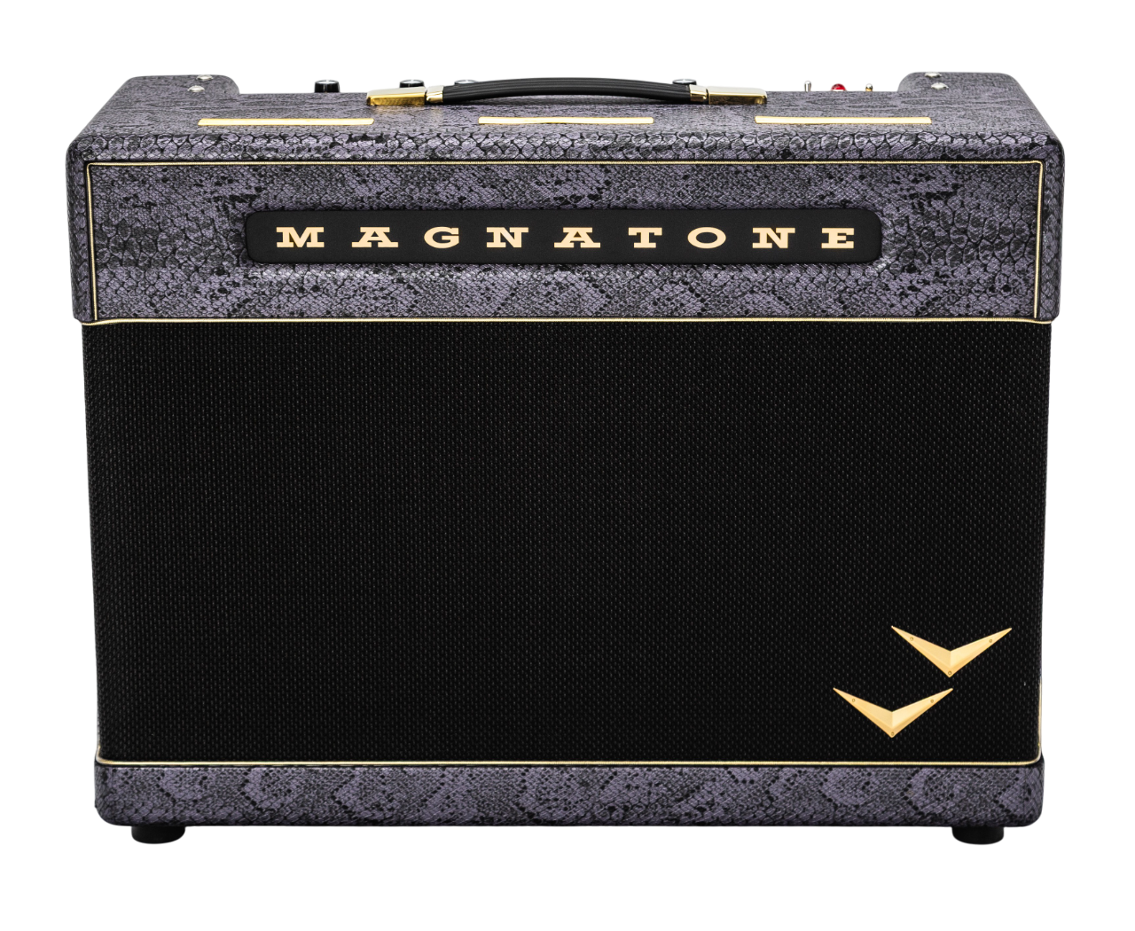 Guitars Pedals Amps & Stuff are in fine mood, we are now dropping the almighty Magnatone Slash Signature Super Fifty Nine 2 X 12 Combo in Purple Python into your world. This is fresh in Guitar Amps and Cabs, new, boxed, and transmitted your way by courier. No planet too small, no riff too loud. This is brand new gear, full warranty. Want the full details? Click through to the Magnatone team direct, they have more details than we could ever be bothered to type out here. no one reads it Blaa Blaa Blaa, Go on, treat yourself. You deserve it. Magnatone Slash Signature Super Fifty Nine 2 X 12 Combo in Purple Python