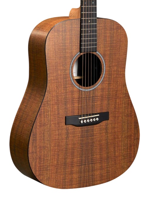 "The remastered X Series is made to play. The acoustic electric D-X1E features the iconic Dreadnought body shape, now available in two eye-catching high-pressure laminate (HPL) patterns—koa or mahogany. The HPL top, back, and sides give you durability and classic Martin style, while playability enhancements include a thinner fingerboard with a gently beveled comfort edge and refined string spacing, and a modernized bridge contour for a smooth and comfortable playing experience. Its signature size is loud and projective with strong bass, lending itself to any genre and experience level. The D-X1E also comes with satin tuners and Martin E-1 electronics, featuring a builtin chromatic tuner and volume, tone, and phase controls, letting you plug in and play at any volume. All X Series models come with a softshell case."