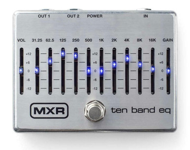 The MXR Ten Band EQ has been upgraded with noise-reduction circuitry, true by- pass switching, a lightweight aluminum housing, brighter LEDs for increased visibility, and a second output so you can run two separate signal chains. With ten carefully chosen frequencies and both input and output level controls, the Ten Band EQ will let you tune your bass or guitar rig to any room in seconds—create earthshaking low- end; restore punch, level, and treble response to a crowded pedalboard; warm up an amplified acoustic; and much, much more. For ultimate tone-sculpting ability in a bullet-proof enclosure, put the Ten Band EQ on your pedalboard.