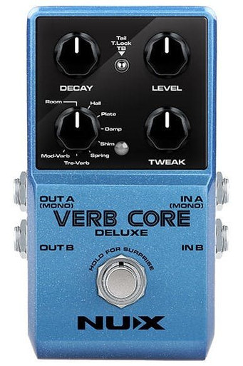 The NUX Verb Core Deluxe has infused 8 great reverb pedals to give you a large palette of different effects. Using the Type knob, you can change between which of the 8 effects you desire.