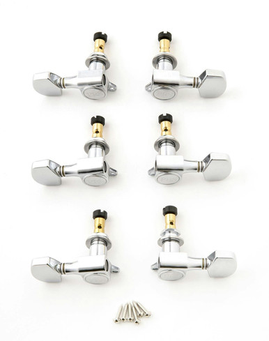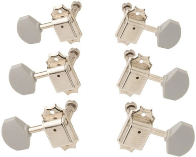 Original locking tuner replacements (x6) with nickel finish. Grommets & screws included. Direct replacement for SE Silver Sky.