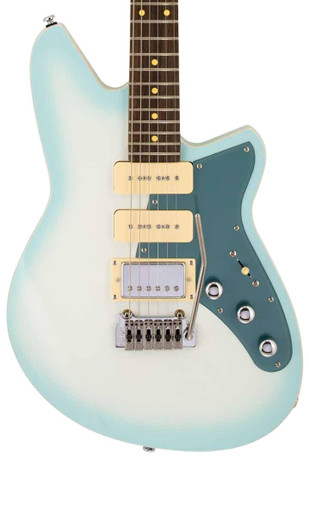 The Reverend Billy Corgan Drop Z combines the aesthetic features of his Z-One signature model and a longer 24-fret, 26.25″ scale neck designed for drop tunings. The long scale neck provides appropriate string tension for down-tuning, so the tone is deep and full, yet still stays punchy and clear. The Alder solid body paired with Railhammer Billy Corgan Z-One Pickups delivers a heightened output and a velvety treble for a rich, weighty rock tone. The roasted Maple neck, fingerboard, and medium oval profile are comfortable to play, even with the slightly longer scale length.