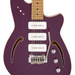 Balance vintage character with modern playability with the Reverend Kingbolt Air 390. It begins with a slab of mahogany, routed out for a full-length center block. The body is capped with a solid spruce top. The mahogany locks in warm midrange and sustain. The spruce top adds harmonics and shimmer. Enjoy massive semi-hollow resonance in a compact body. Ideal for players seeking warm cleans, responsive overdrive, and controlled feedback. Outfitted with Steelhead P90s—Reverend’s hum-cancelling, high-output evolution of the classic—the guitar features a push-pull Studio Switch for seven pickup combinations, including neck+bridge and all three pickups. Bold colors, brown backs, and fresh headstock logos complete the look. The Reverend Kingbolt Air 390: modern craftsmanship, timeless sound.SpecificationsBodyBody wood: Semi-Hollow MahoganyTop wood: Solid SpruceFinish: Gloss PolyurethanePickguard: NoneBinding: White PlasticNeckScale length: 25.5Neck joint: Bolt OnNeck wood: Roasted MapleProfile: Medium OvalFretboard: RosewoodTruss rod: Dual ActionFrets: 22 – 0.110″W x 0.050″HElectronics & HardwarePickups: Steelhead P90 SetControls: Volume, Tone (Pull Neck + Bridge On), Bass Contour Controls, 5-Way SwitchBridge: Wilkinson WVS50 IIK TremoloHardware: Chrome